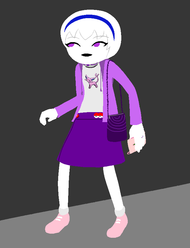 After changing into some more comfortable clothes, her first priority was figuring out which four Pokemon she was left with. To her extreme relief, Guile was one of them, and she doesn’t bother returning the Espeon to her Pokeball like she does her Larvesta, Ninetales and Dragonite. After she slips the balls into her purse and puts that on, she cautiously exits the room, purple fox-like creature in tow.]]