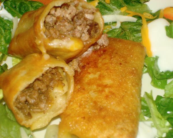 ...Well. They're supposed to be egg rolls. He kind of had to improvise everything, but he did have bread, chicken, fish, eggs...just enough to try and make something. They probably only taste marginally better than plain fish sticks, but...]